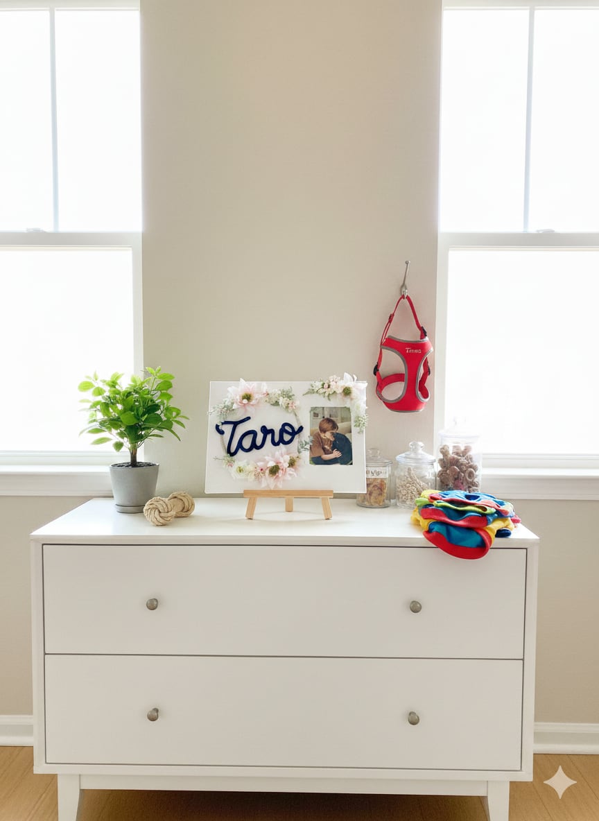 ニュアンスピンクのリースと写真が、名前のある記憶を、静かに美しく留めてくれます。