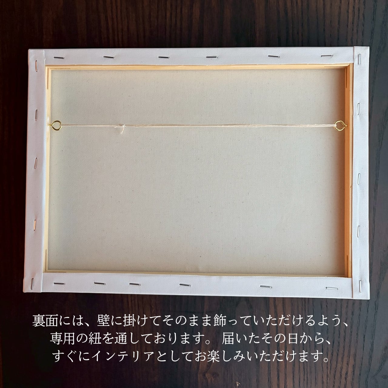 「木製イーゼル」を標準セットにしてお届けします。届いたその日から、すぐに特別な場所を作っていただけます。より洗練された、軽やかな雰囲気を演出したい方には、オプションで「鉄製ホワイトイーゼル」への変更も可能です。