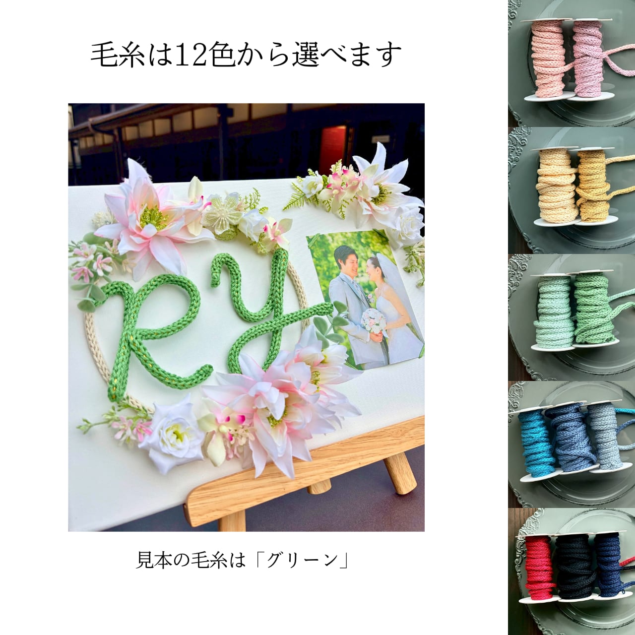 毛糸で描くのは、お二人のイニシャル2文字。