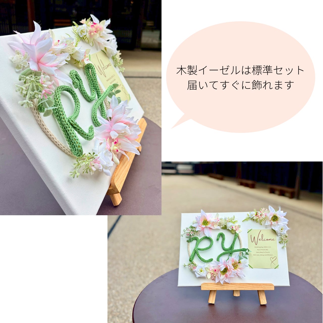 結婚式のウェルカムスペースを、やわらかな花の彩りで包み込むフォトキャンバス。