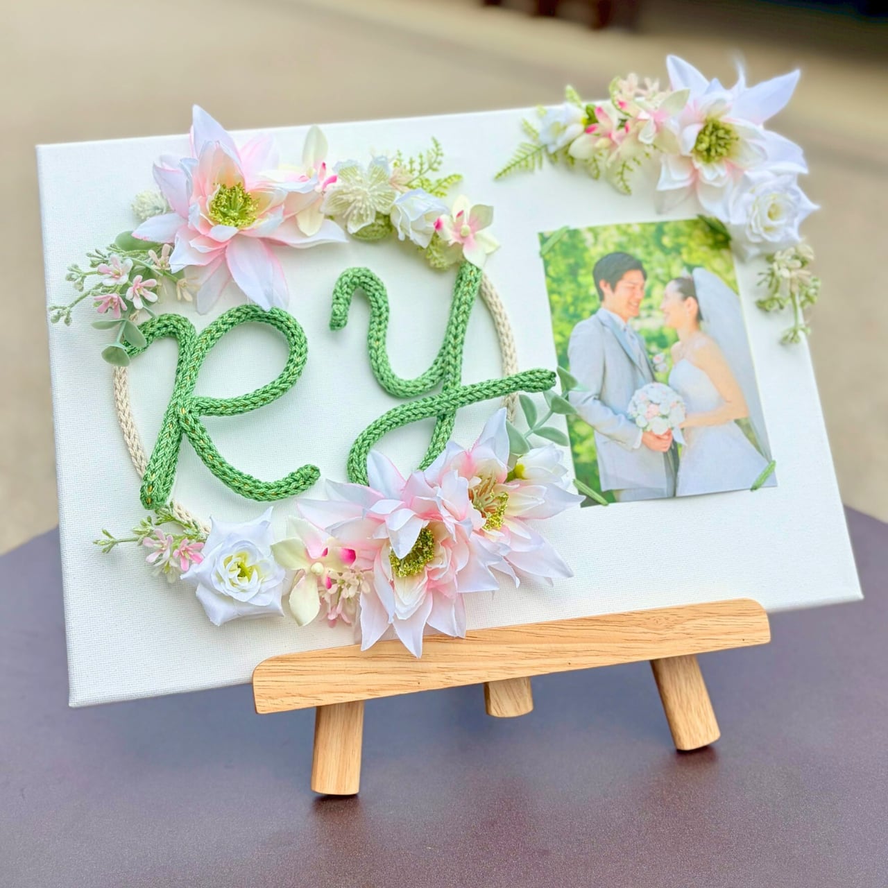 【イーゼル付き/イニシャル】恋するリース/フォトキャンバス|文字色12色から選べる