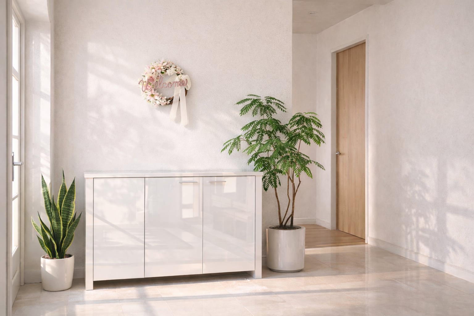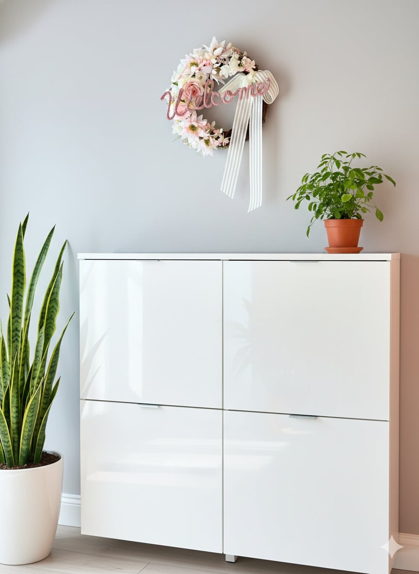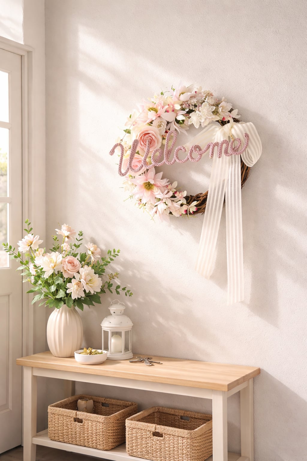 同系色でまとめたリースは、文字を引き立て、インテリアに個性を加えます。