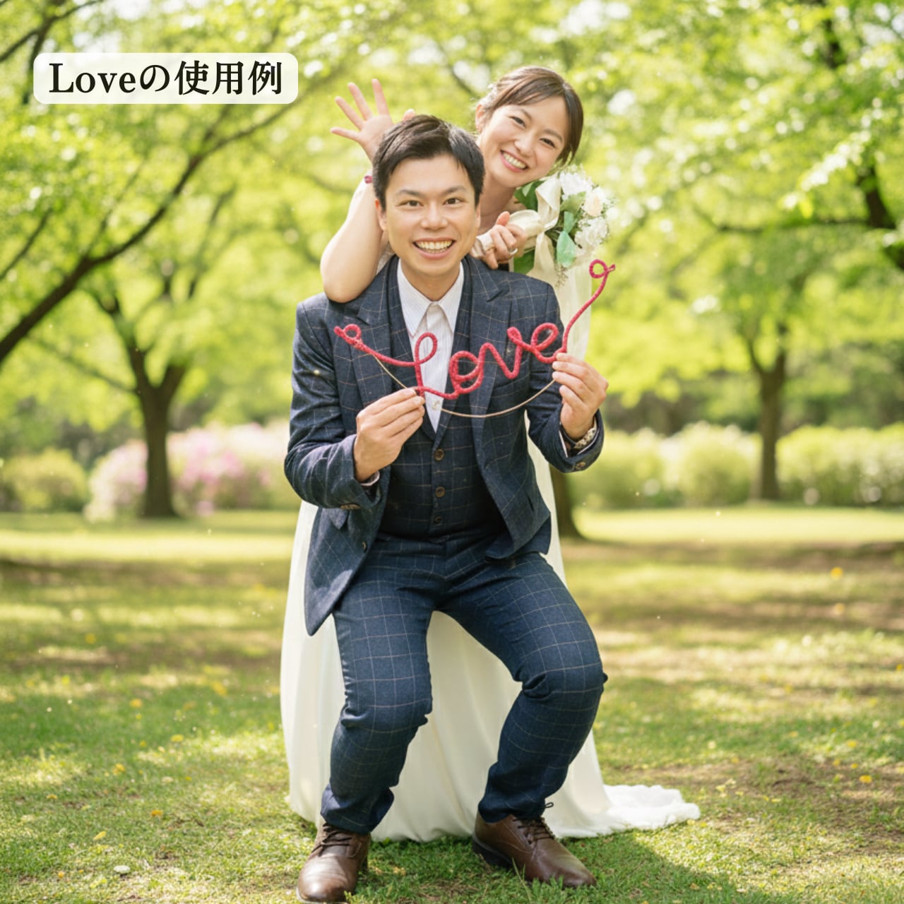 王道の可愛さ!お二人の間に浮かぶハートが、幸せな雰囲気を引き立てます。