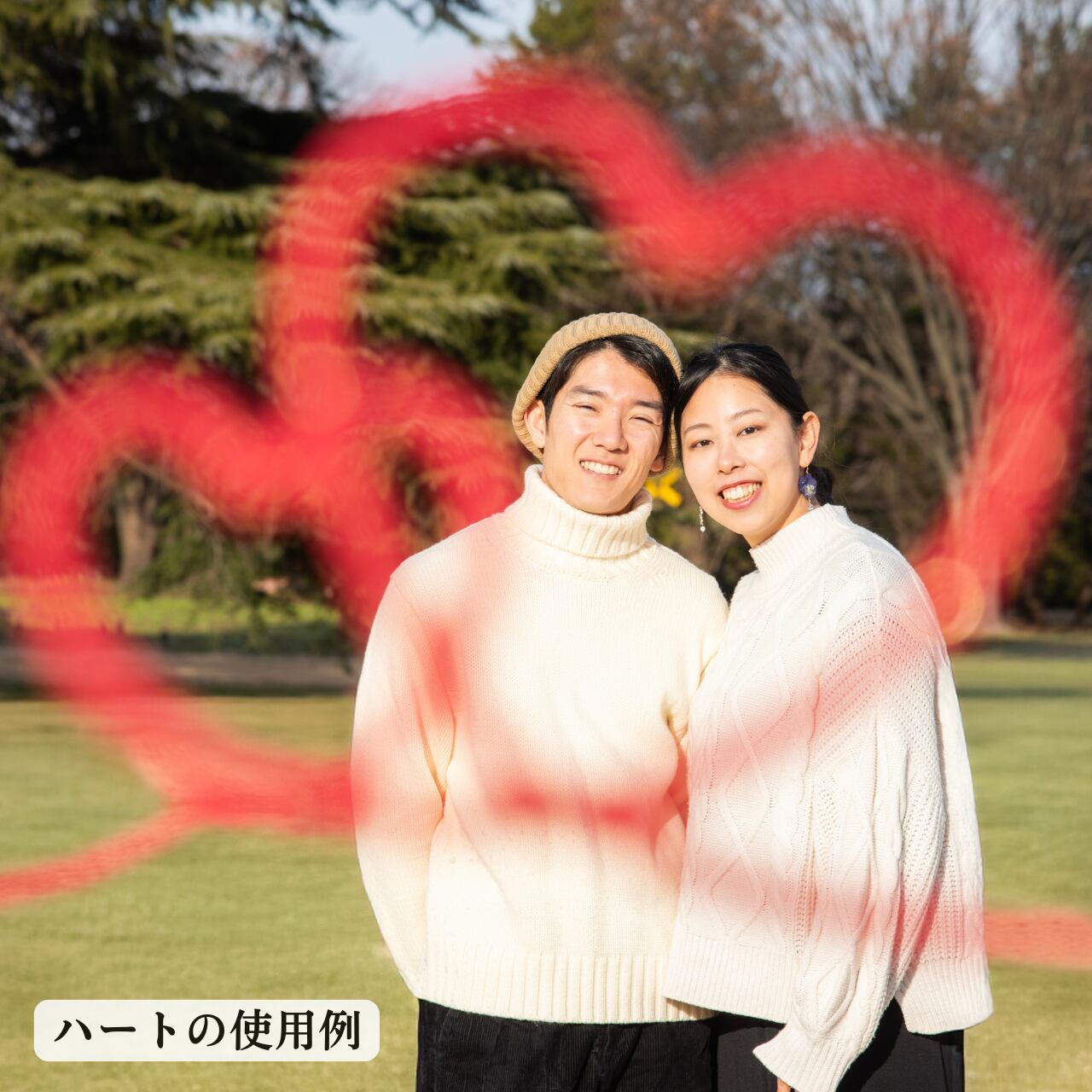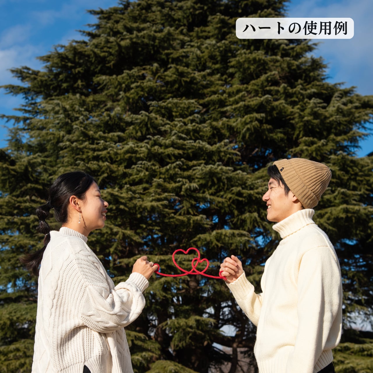両端には小指を通せる輪っかをお作りしているので、まるで本物の「運命の赤い糸」で結ばれたような、ロマンチックなカットが撮影できます。